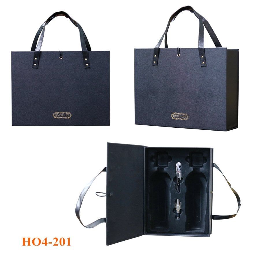 Hộp da đựng rượu vang quai xách 2 phụ kiện - 201