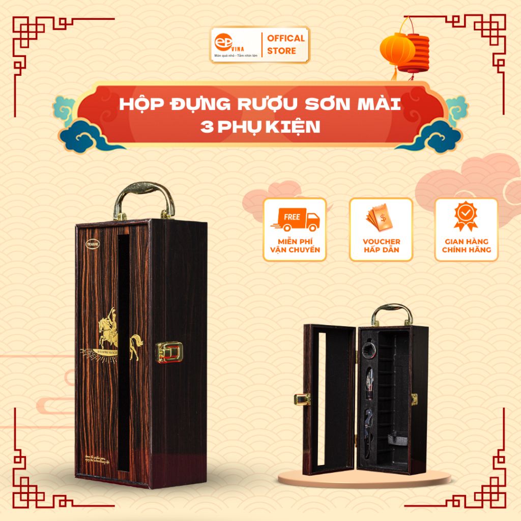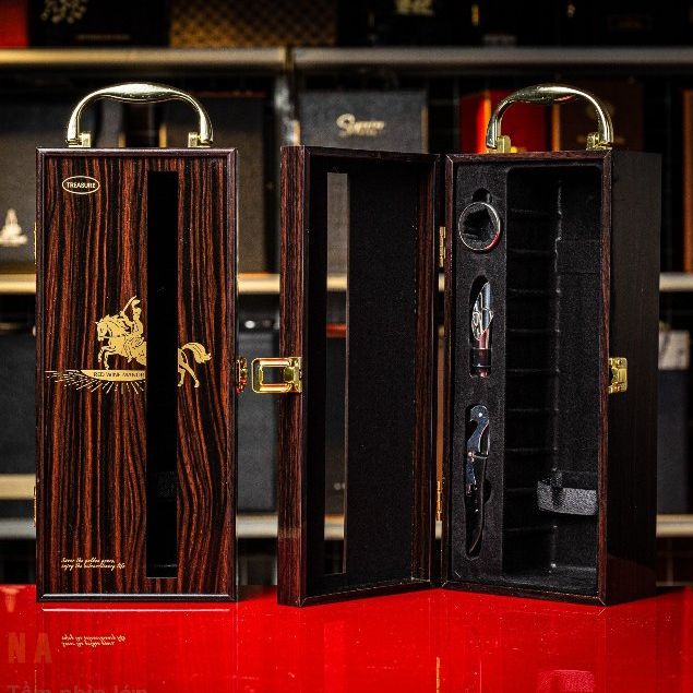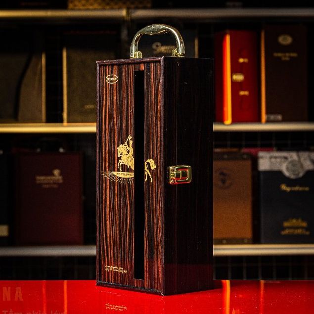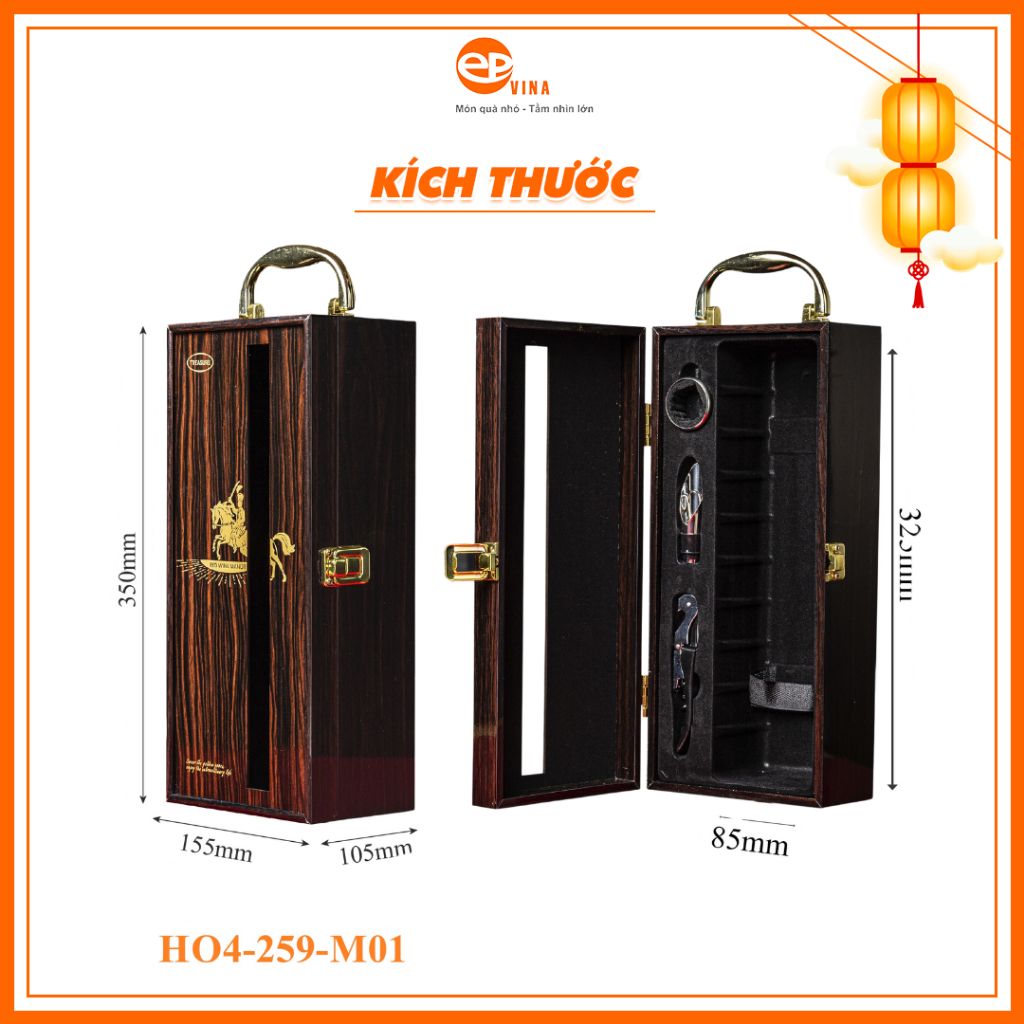 Hộp đựng rượu gỗ sơn mài đơn khay nhựa 3pk màu vân gỗ đen con ngựa khoét HO4-259-M01