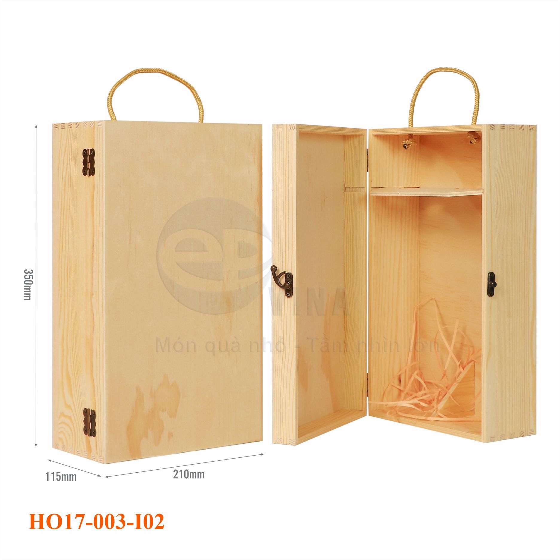 Hộp gỗ 2 chai nắp kín không in mặt ép HO17-003-I02