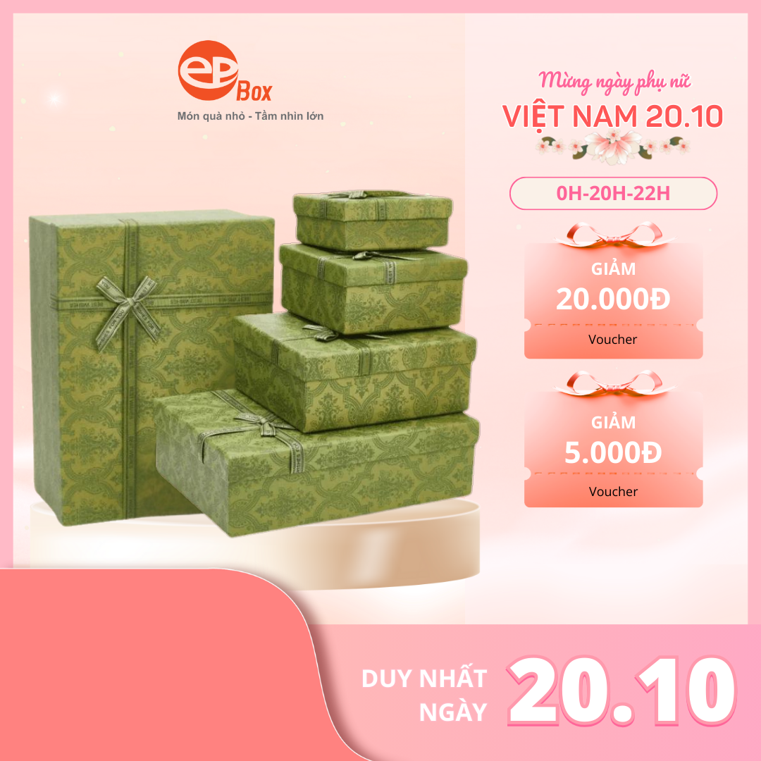 Hộp Quà Sinh Nhật Epvina Box, Hộp Quà Tặng Màu Xanh Cốm Sang Trọng Hợp Mùa Giáng Sinh, Kỷ Niệm