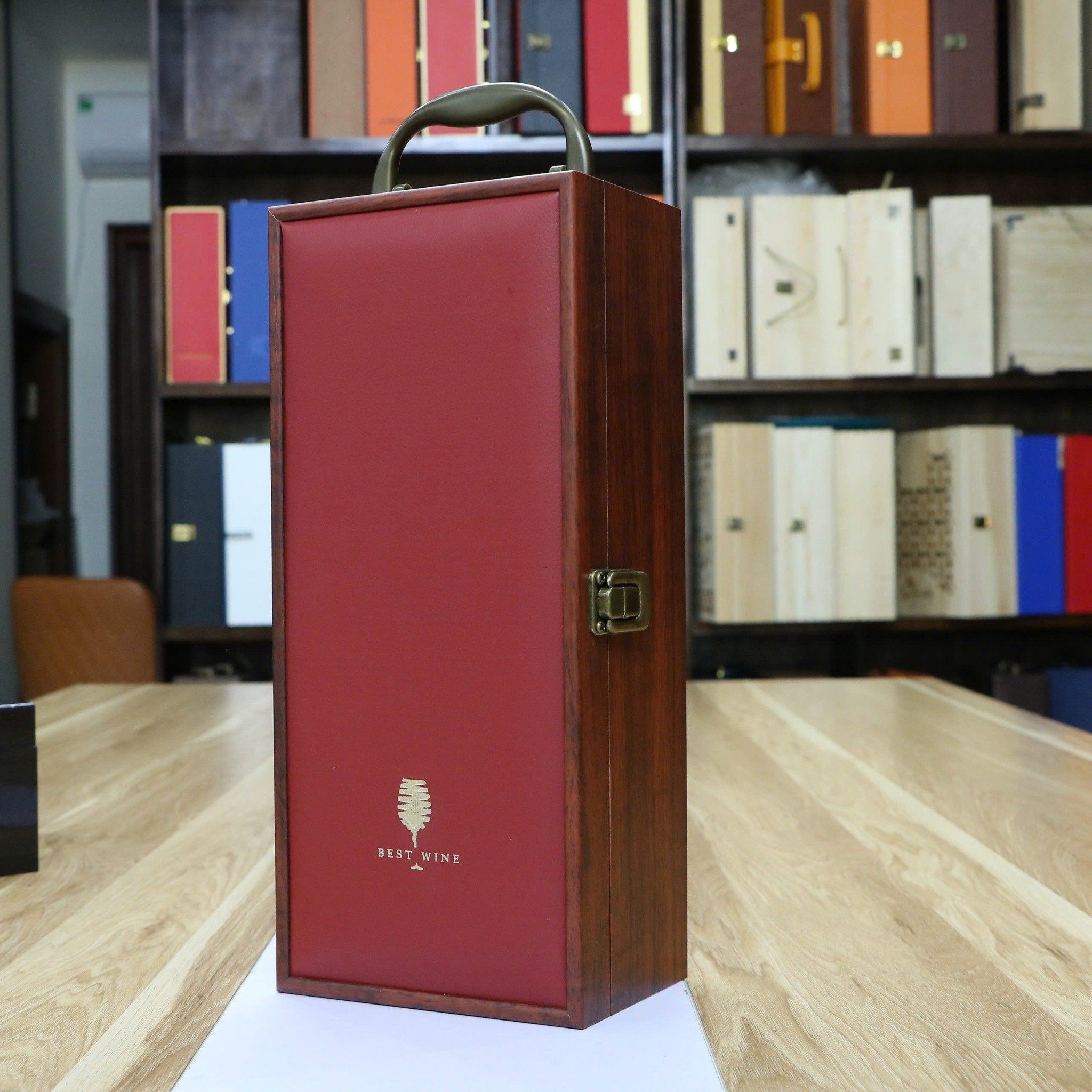 Hộp sơn mài 1 chai mặt da có in màu đỏ HO15-285-M03-I01