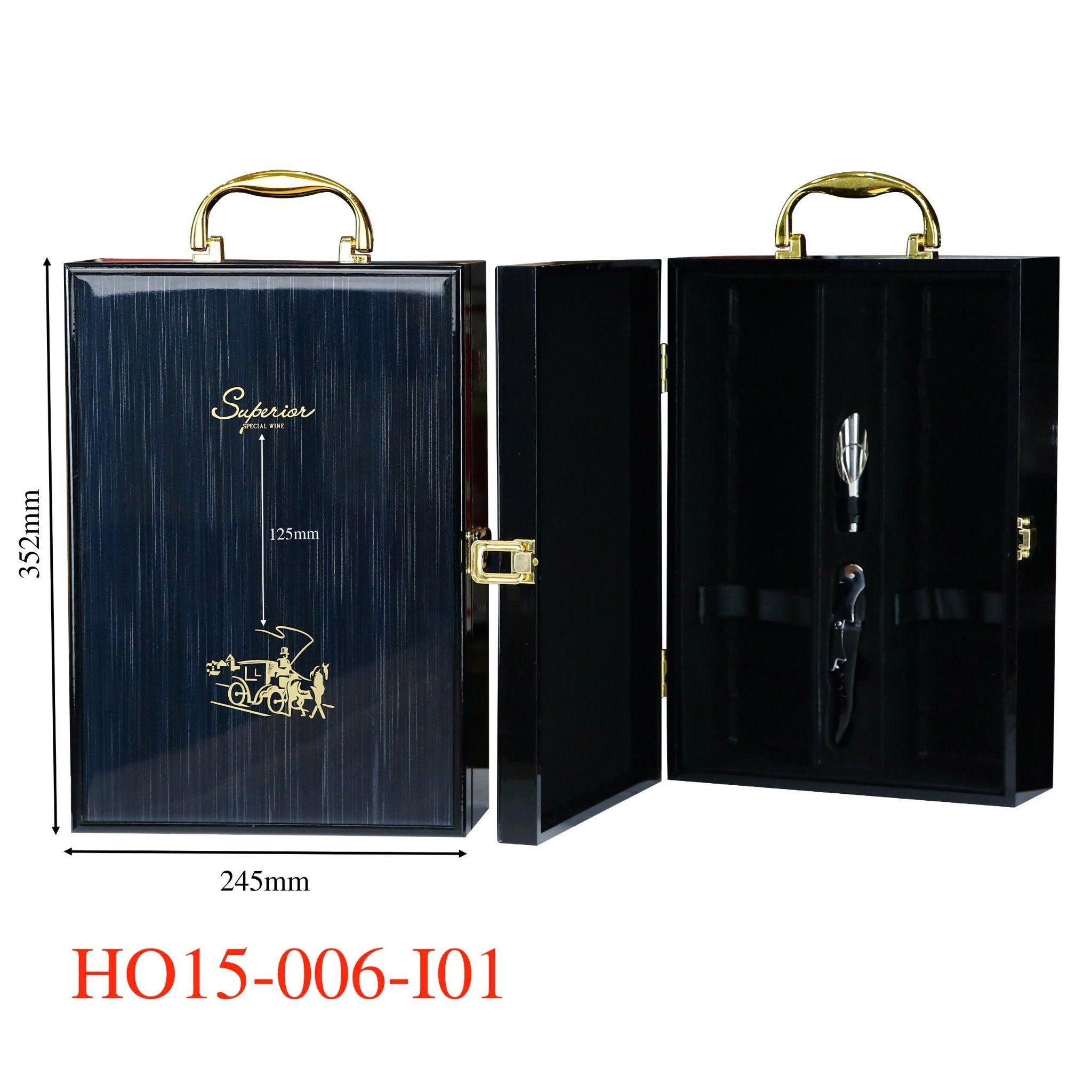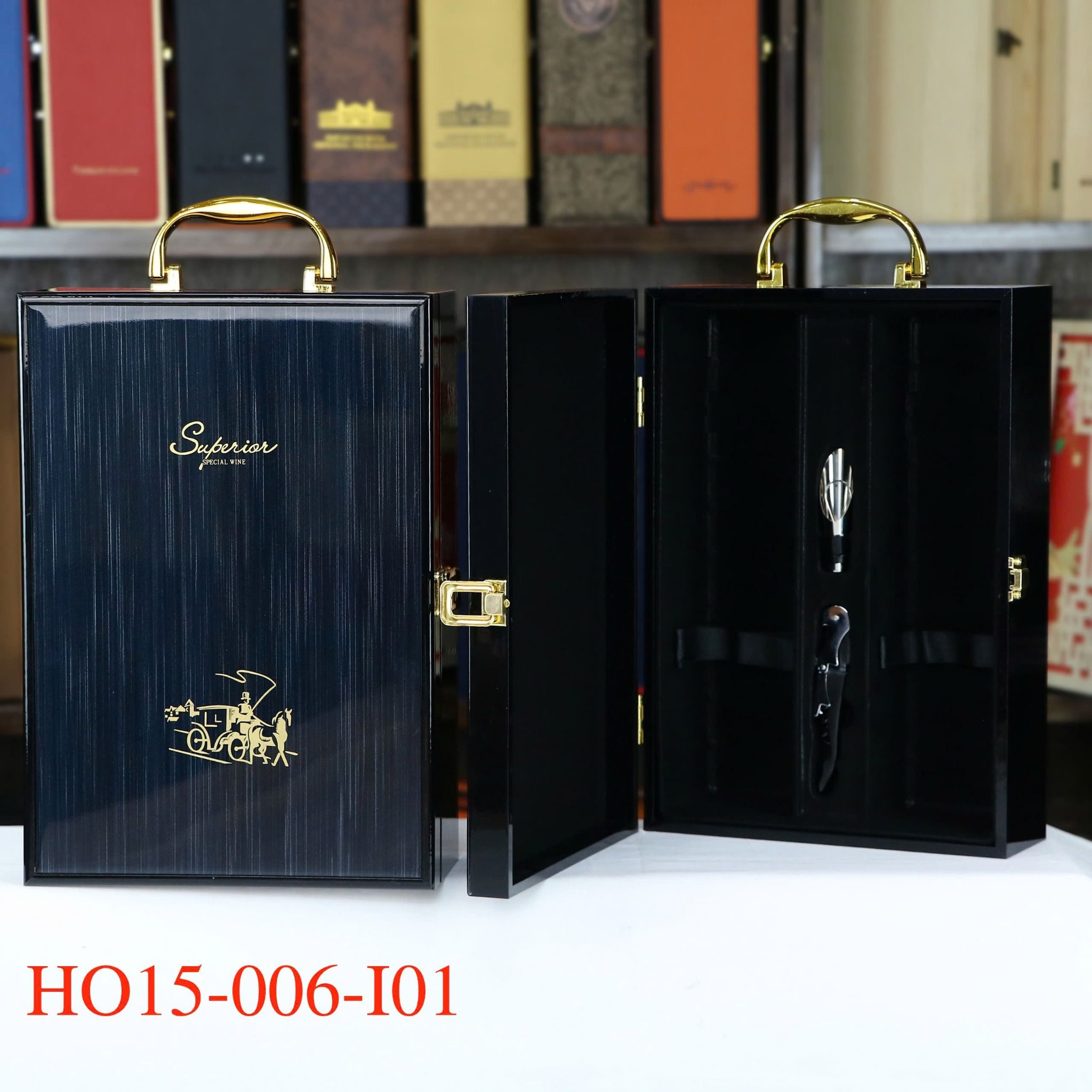 Hộp sơn mài 2 chai khay nhựa thẳng 2 pk có in màu xanh HO15-006-I01
